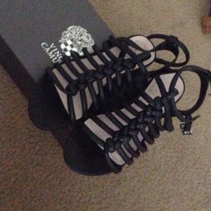 size 5 braided black sandals! they're in great condition! bought from anther posher but they r tight on me ! price is negotiable ! make me an offer ! 😁😊