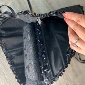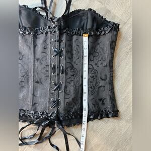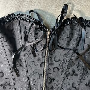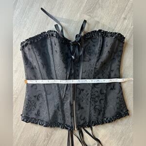 black silky floral intricate corset with ties- silver hardware- no brand/size