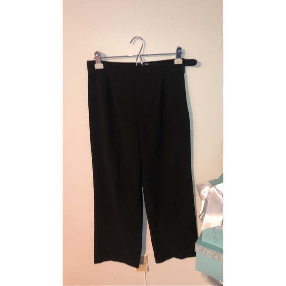 black slacks with a zipper up the left leg