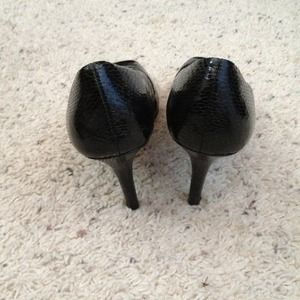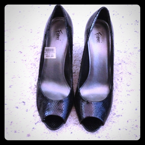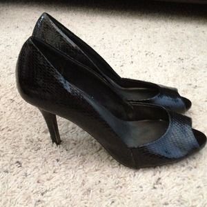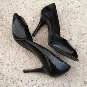 black snake skin peep toe shoes