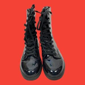 black vegan leather lace up boots glossy flat sole size 7 witchcore