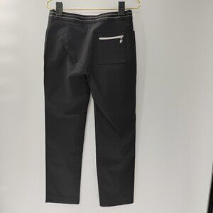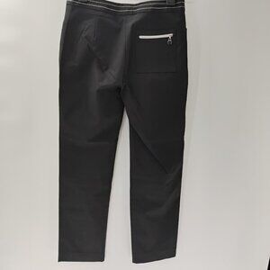These are black Chanel brand women's dress pants in size 10, featuring a straight cut design with silver thread decoration. The pants have a stylish and elegant look, perfect for formal or office attire.