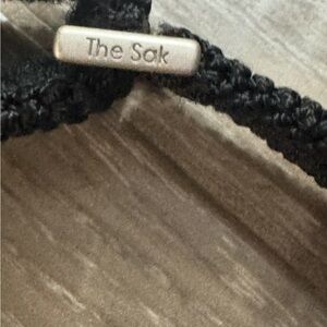 This is a black woven crossbody bag from The Sak. perfect for carrying essentials. The woven texture gives it a stylish and possibly bohemian or casual feel. It has a zip closure and a long Velcro adjustable strap, allowing it to be worn comfortably across the body or over the shoulder even around the waist, for hands-free convenience. The bag also features a small metallic tag with "The Sak" logo: