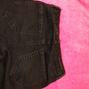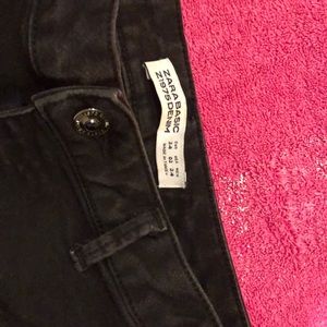 black jeans w zipper and detail on the knees! super cute work a couple of times but in good condition, they're tagged as a size two but can fit a 0 too!