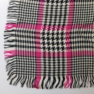 black/white/pink houndstooth fringe square scarf. no tags. a few loose threads, otherwise Excellent used condition.