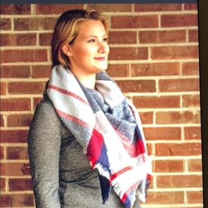 Blanket scarf , blur, red and grey. 100% acrylic.