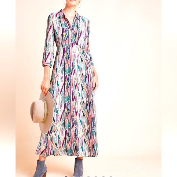 bl-nk ANTHROPOLOGIE Winona Watercolor Shirtdress SZ S FLOWY button Down western