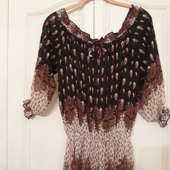 Black sheer print blouse. No label.