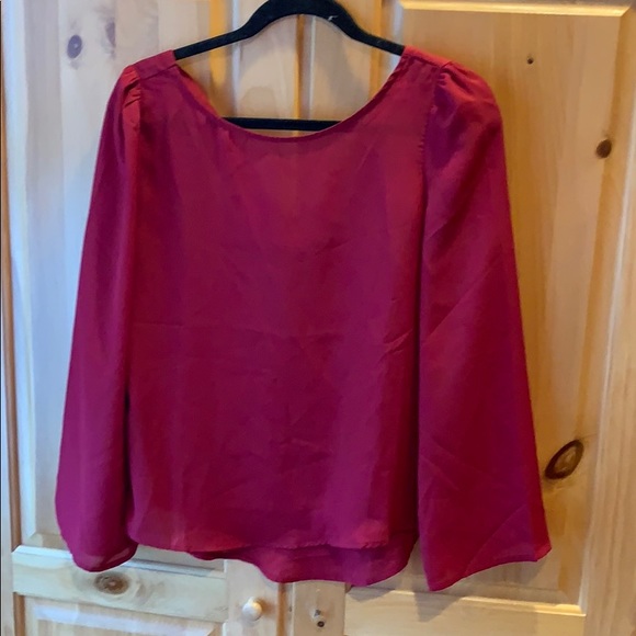 long sleeve sheer blouse. wide flare sleeves. Big scoop V with cross pattern on back of shirt. in great condition. wine colored 🍷