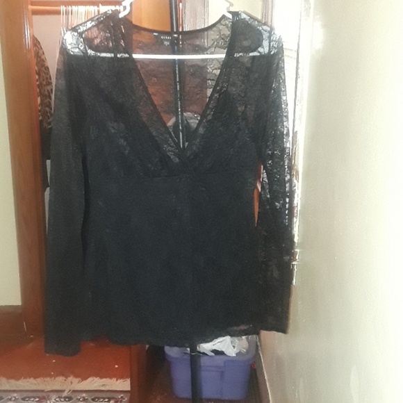 black v shape lace blouse with a tank top underneath it is a little tight on the arms