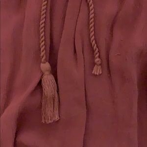 maroon blouse with mesh floral design on top! on of the tassles at the end is missing.