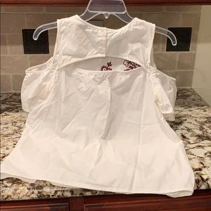 white shoulderless blouse with red embroidery. very cute and light for any season! women’s size small