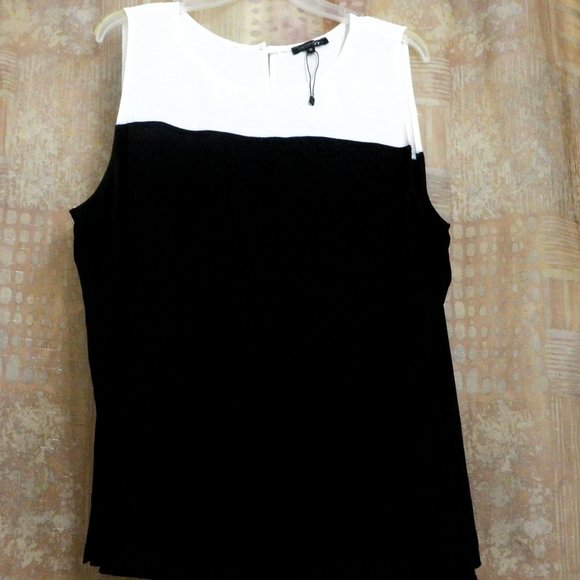 Sleeveless blouse, polyester black and white
