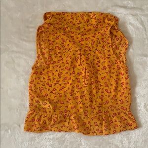 yellow blouse with orange and red flowers with buttons