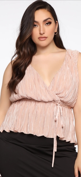 Dusty Rose Crinkle material blouse. Draw string at the waist, V neck in the front and back with a string connected at tbe shoulder in the back. Super light weight flirty blouse prefect for a night out or at the office with a blazer.