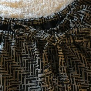Black and Tan. Has adjustable neck line. Can make a bow.