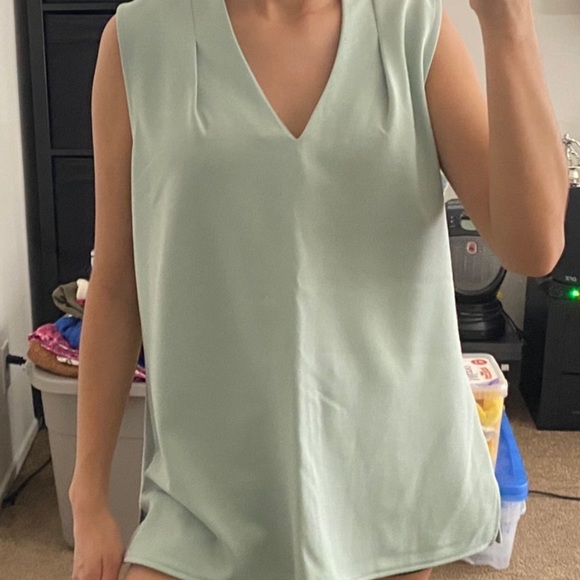 mint green blouse from ann tyler & is a little pulled from the bottom of the blouse as shown in the last slide but it can be easily removed