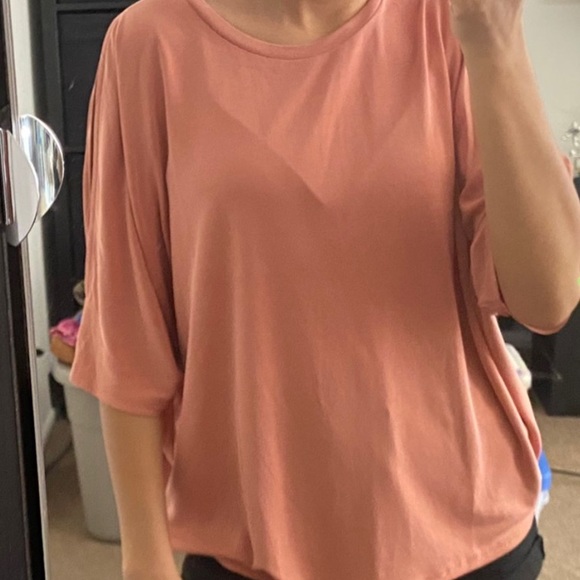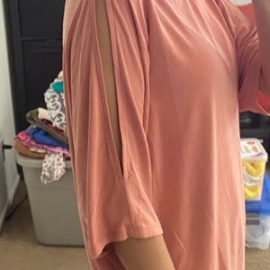 oversized coral tee w/ a big hole on both sleeves from express - slight stretch - size small - never been worn