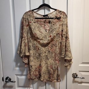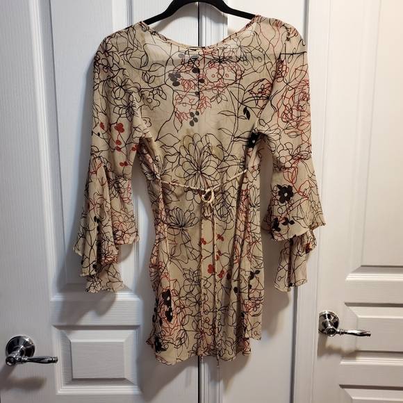 really cute beige see through blouse great sleevs ties in back brand new