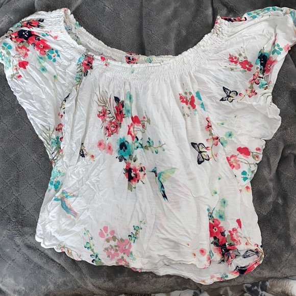 EXTREMELY cute and my absolute favorite shirt i’ve ever owned... floral print with butterflies. kinda sad to sell it😪
