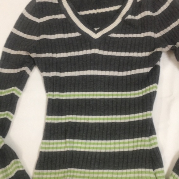 long sleeves V neck stripped gray white lime green knitted