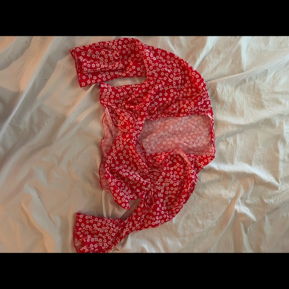 great condition -can tie in front or leave undone -sleeves go below elbows