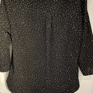 Croft and Barrow 3/4 sleeve black with white dots. Pullover with buttons at the top. 100% polyester, size PM
