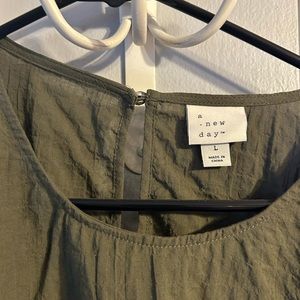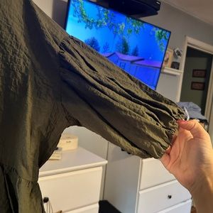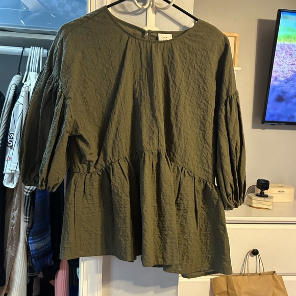 Military green balloon sleeve top worn once loose peplum top