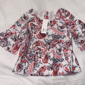 Dress your little one for success with this Paisley Peplum Top from Janie and Jack. Made from cotton, this shirt is incredibly soft, so it will lay comfortably against their sensitive skin. We know at this age that they are constantly in motion, so this shirt is made with cotton that is soft but sturdy, so whether they are just learning to crawl or already up and running, this shirt will keep them covered and comfortable. This is the perfect shirt for going out, dressing up, or just showing off your precious bundle of joy. Janie and Jack put care into every piece of clothing, creating products that last, even years after your child has grown out of them, so you will offer the best hand-me-downs in town. Help your child look cute and feel great with quality design from Janie and Jack.