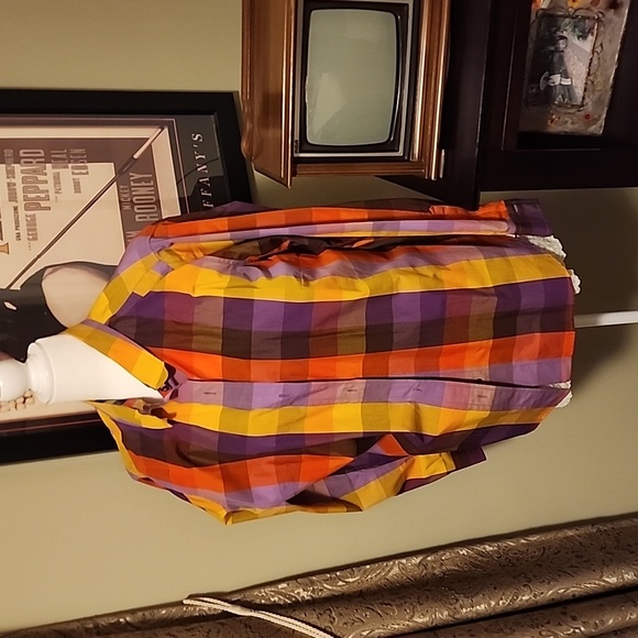 plaid blouse button up Liz Claiborn 1x Great condition. Gold ,orange,purple.