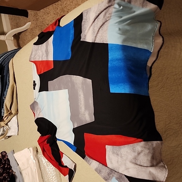 Alfani blouse, Cute with leggings Size L Blue red black Grey. good used condition . No flaws known.