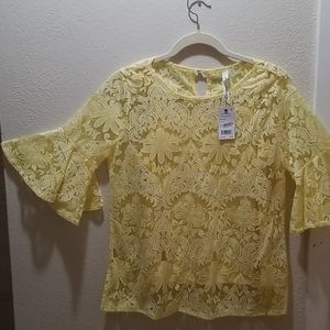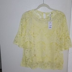 brand new/never used, transparent blouse with a yellow under blouse with spaghetti straps