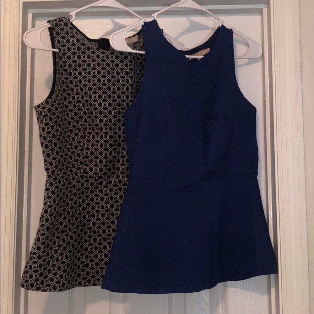 These 2 blouses are in a bundle! They are both a size 4 and will pair with pants or nice shorts and some heels! They zip in the back allowing for a better fit!