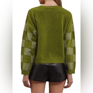 blu pepper XL Olive Moth Green Heather Knit Crew Checker Sleeve Boxy Sweater