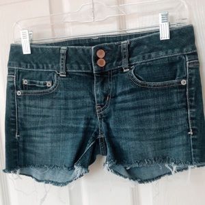 basic blue jean mom cut-off shorts! double button, large back pockets. stretch fabric, really comfortable