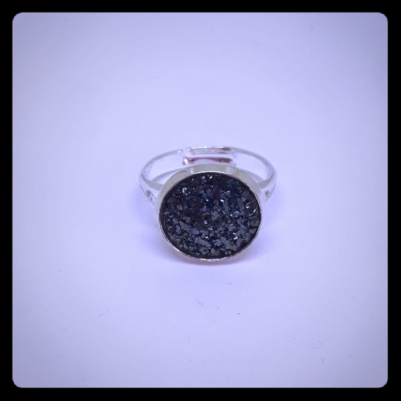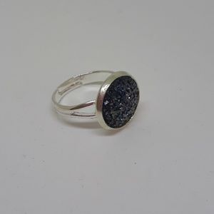 This is a blue faux druzy ring with a sliver adjustable ring base so it will fit most ring sizes also available with a rose gold base see other listing