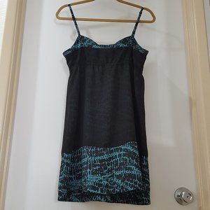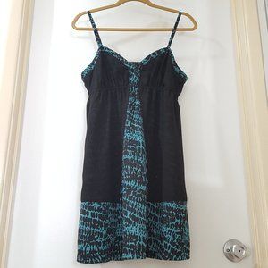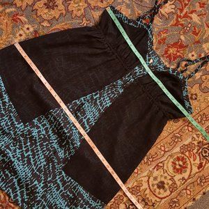 Adjustable straps. Gathered empire waist. Mini length. Slip-on.