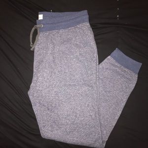 - plain blue grit jogger sweatpants with adjustable waist and boxy pockets