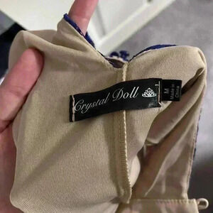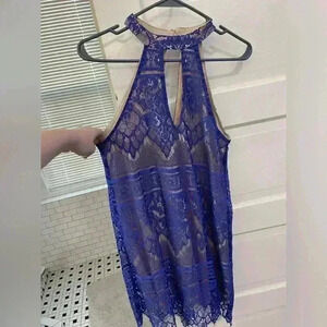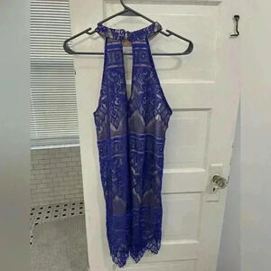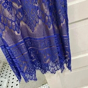 womens blue lace dress with tan underlayment womens size medium formal wear