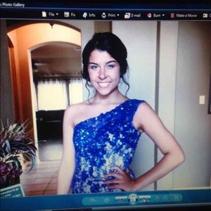 blue lace homecoming dress