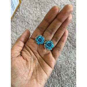 blue stud earring cerulean Cyan rose blue flower small teal aqua wedding earring