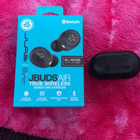 comes with everything shown in pictures. both sides work. amazing sound! used once. comes with different sized ear pieces