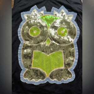 Women’s athleisure tank top, with a sequin owl on the front. Sleeveless. Open, loose back. U-neck front. Longer back than the front. Perfect yoga too. ^this is a size L/XL top, it has no size tag. Refer to measurements*. Loose fit. Soft material. Very good used condition.