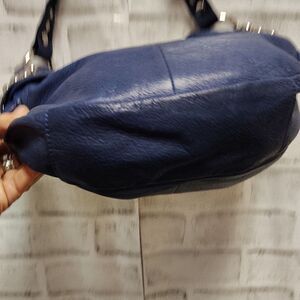 b. makowsky Blue Leather Hobo Bag with Metal Accents
