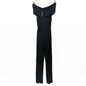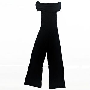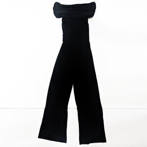 bobi BLACK Luxe Jersey Wide Leg Strapless Jumpsuit Off Shoulder Small
