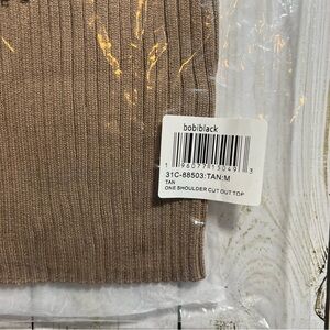 NWT bobi BLACK Ribbed Knit Cut Out Top in Tan. Neckline cut-out. One shoulder style. Lightweight stretchy rib knit fabric.