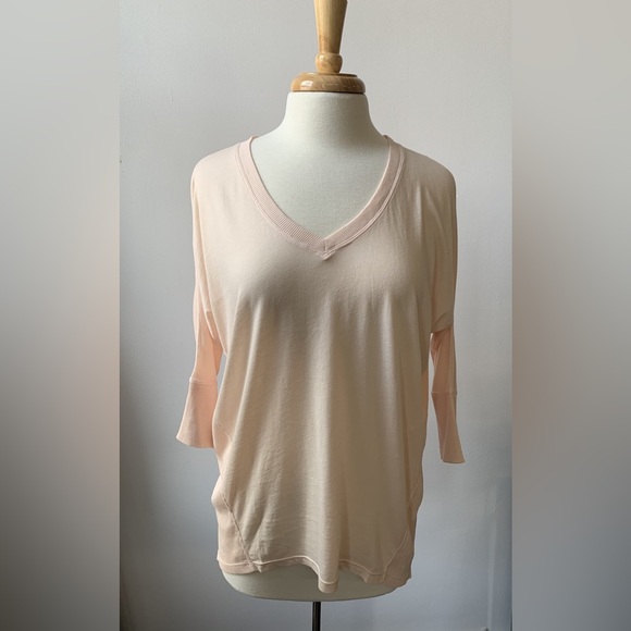 NWT. Featuring a high-low hemline and a v-neck, this super soft top also has 3/4 length sleeves for easy all year wear.