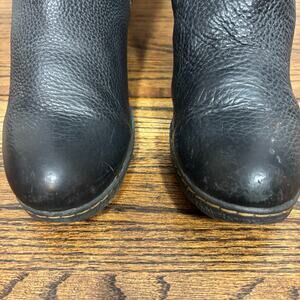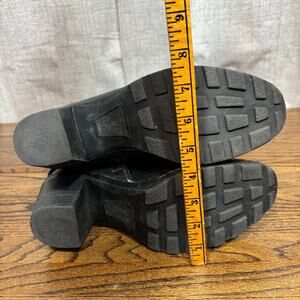 Vintage-style b.o.c. Born Concept black leather riding boots with chunky block heel + buckle details. Tall fit with side zip + rugged lug sole — perfect moto, goth, or boho Y2K vibes.