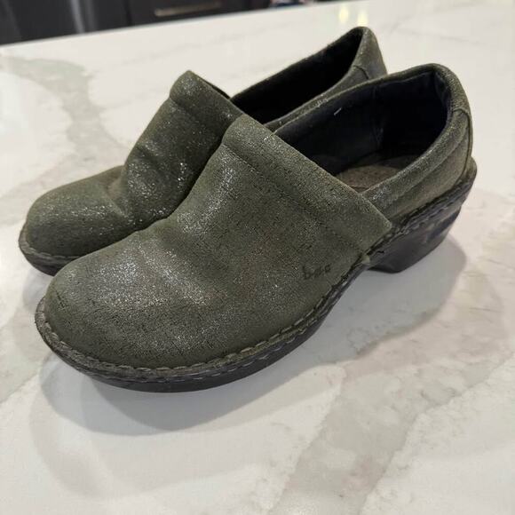 b.o.c Born Concept Peggy SlipOn Leather Clogs Womens 9.5M Green Shimmery Comfort