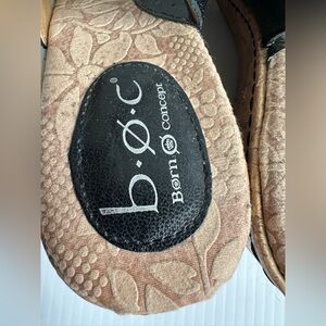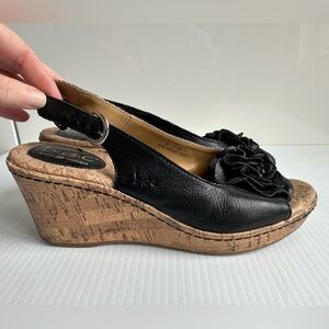 b.o.c. Born Concept Leather Cork Wedge Flower Sandals Black 8M